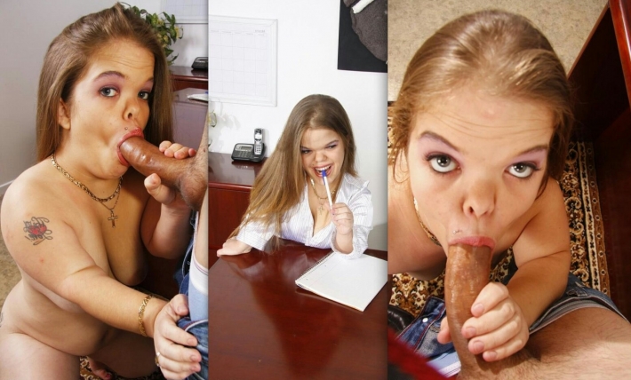 Двое представителей негроидной расы один карлик другая телка с не реально огромными дынями занялись сексуальными играми. Карлик размахивая самотыком пытался попасть по сиськам негритянки. Это быстро надоело и негритоска по самые яйца заглотила член, пока не подавилась спермой.