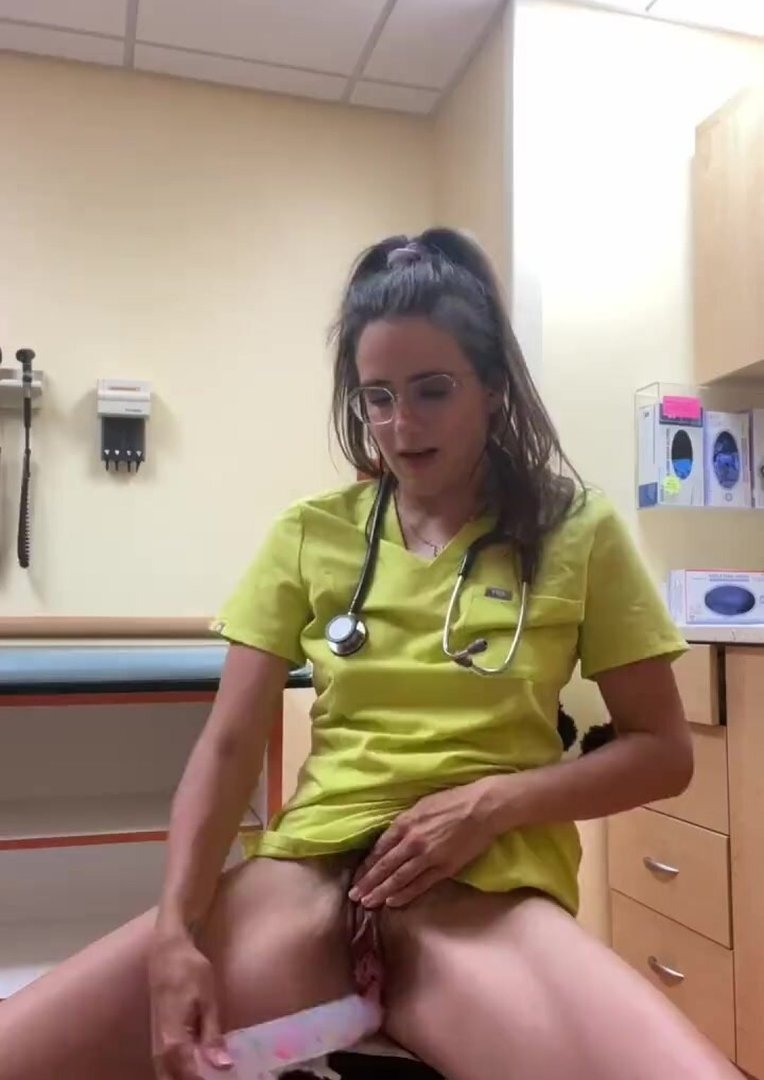 Уединившись в своём рабочем кабинете, потрясающая медсестра начинает обольстительно хвастаться голой писей, специально занимая по-настоящему головокружительные положения. Похотливая доктор, совершенно при этом н естесняется, ведь ей безумно нравится ощущать на себе повышенное внимание разгорячённых ухажёров. Именно поэтому, сексапильная доктор и раздвигает широко по сторонам свои длинные ножки, раскрывая максимально подробно пикантное зрелище на своё манящее влагалище.