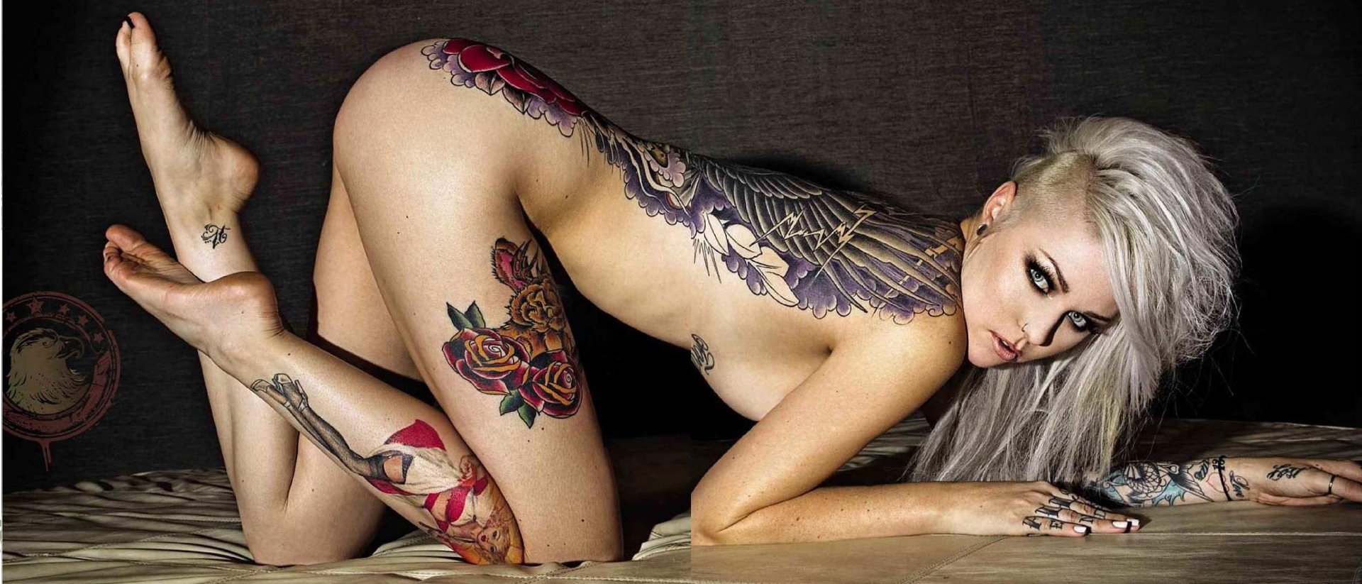 Изумительно выглядит татуированное тело тёлочки в эротике, ведь распутная пассия весьма неплохо показывает себя без одежды. Развратная румынка совершенно при этом не стесняется хвастаться раздетыми сиськами и голой попкой, стараясь, как можно подробнее хвастаться ими перед объективом фотокамеры. В общем, благодаря таким похабным действам, обнажённая пассия достигла умопомрачительного соблазна, перед которым, однозначно. не в силах устоять ни один настоящий кавалер.