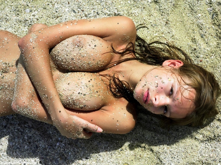 За городом есть высокие зеленые заросли какой-то культуры, которые тянутся на километры. Сиськастая малышка утопает в море травы, ей нравится, как зелень ласкает ее тело, как воздух обдувает большие сисяки, которые висят, как большие дыни, чуть вытянутые. Девка немного устала и легла отдохнуть, а задница видна отлично в такой позе на боку и дырочка тоже. Только анус никак не выделяется. Прилечь бы сейчас с ней и пристроится к попке. Много бы отдал за прогулку с такими сиськами и писюхой.