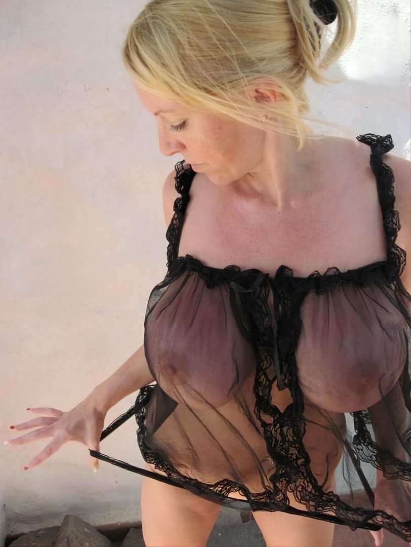 Удобно устроившись на ступеньках лестницы, дамочка одетой в костюм из сетки, покажет огромные сиськи. Ее тело в такой сетке выглядит соблазнительно, особенно когда она засветит бритую пилотку, через специальный разрез. Что тут сказать для секса самое то, что надо.