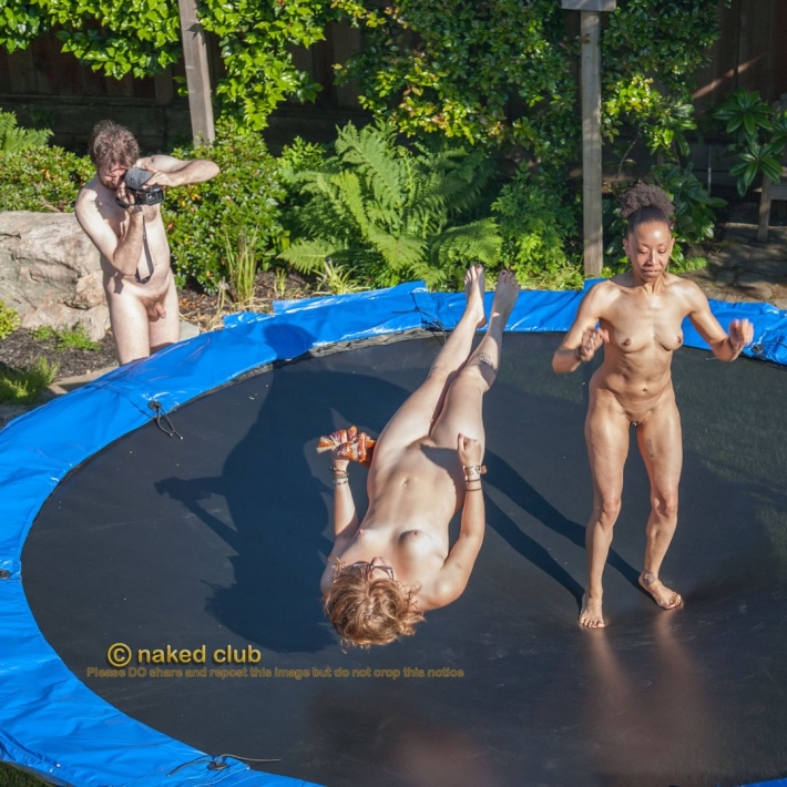 Спортивная бабёнка на конец-то поняла для чего ей поставили батут и с гордой осанкой принялась за дело. Подпрыгивая на батуте она начала раздеваться, со смехом резвясь и играясь. Ее красивая грудь, стройная талия, длинные ножки очень привлекательны и интересны.