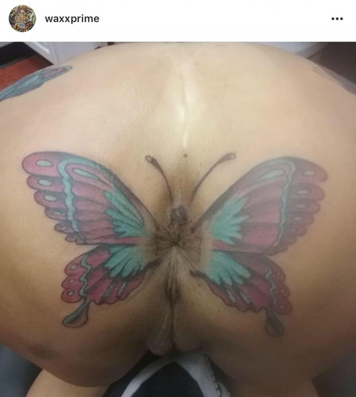 Симпатичная малышка выбралась на балкон, где будет обнажаться. Татуировка в виде бабочки на боку притягивает взгляд, но это только до того пока не снимет маячку, вот тогда можно начинать пожирать ее взглядом. Не останавливаясь раздеваться она стянула трусишки оголяя вкусную попку.