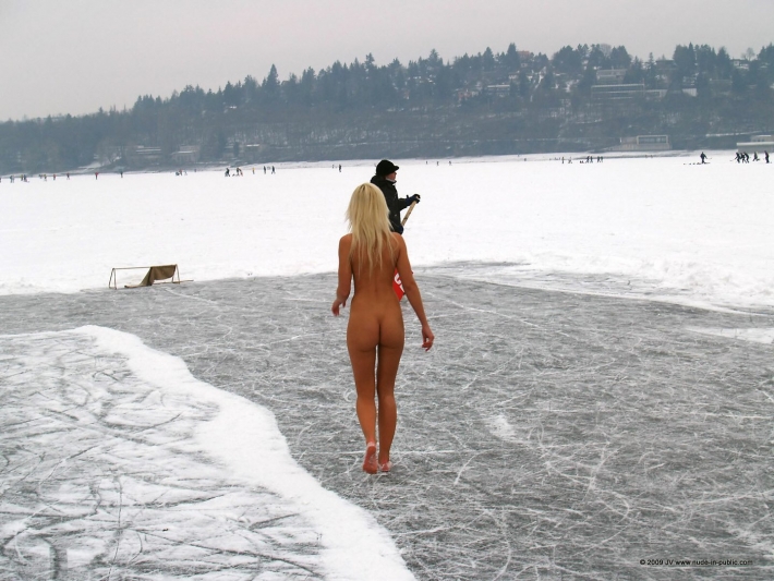 Молодая отмороженная девушка с сексуальным телом решила прийти на зимнюю рыбалку и самое замечательное то, что пришла она на замёрзшую реку совершенно голой. Красавица взяла у рыбака бур и пыталась просверлить дырку во льду, а у нее не плохо получается.