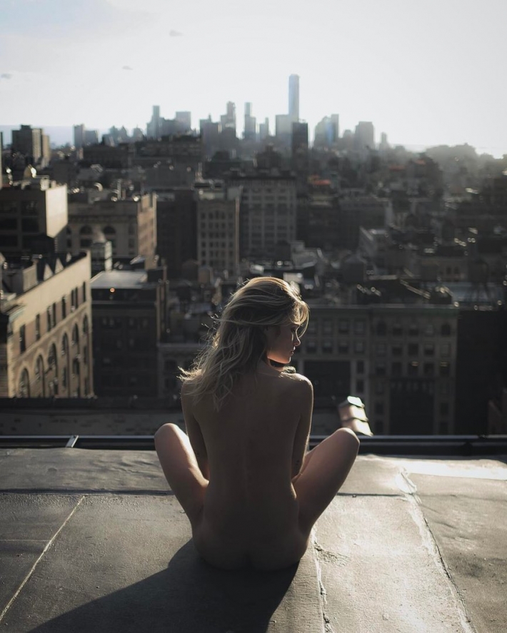 Забравшись на крышу супермаркета можно найти там очень эффектную блондинку с большими сладенькими шариками сисек. У красотки смазливое личико и очень красивые спелые губки, которыми она шикарно отсосет шляпу! Но сейчас киска просто фантазирует в одиночестве, возбуждаясь от сексуальности своего тела.