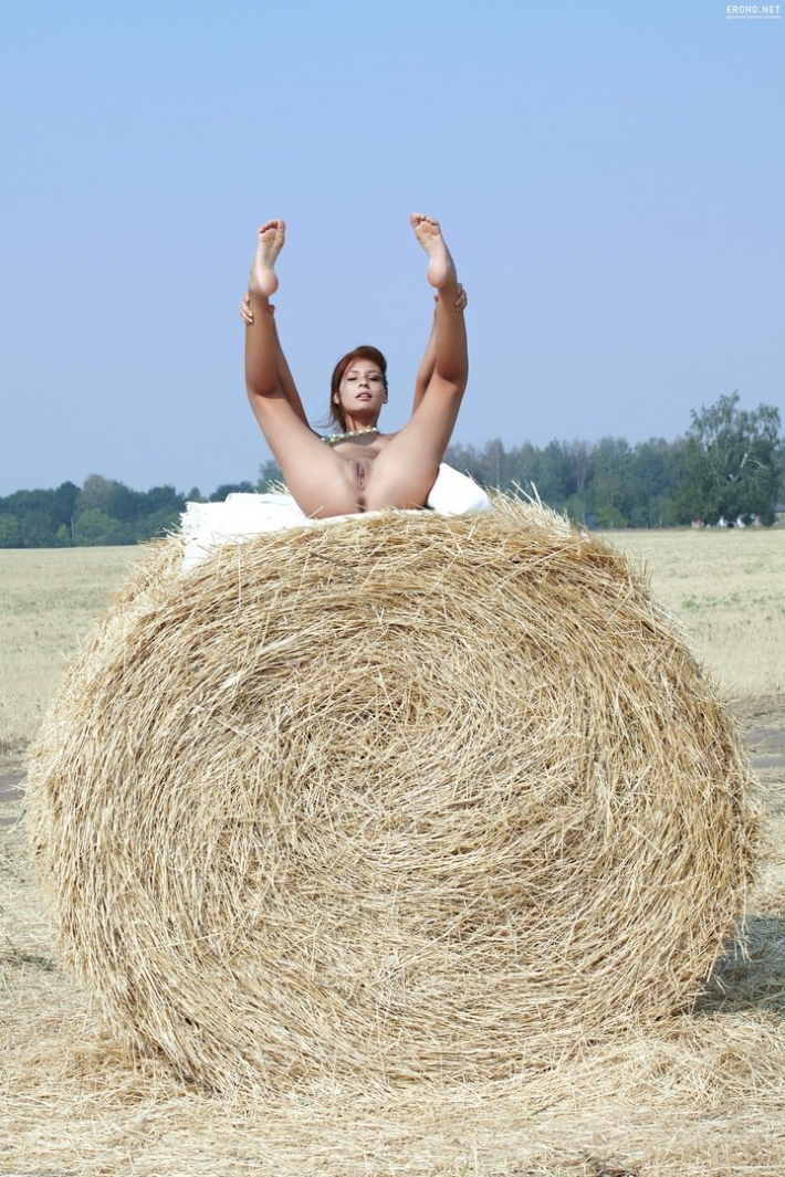 Красивую эротику нам представила смазливая бабёнка в стогу сена. Как всегда подружка прогуливалась в своей деревни у бабки, завидев такую прекрасную капну, она не смогла удержаться и скинув с себя ворох одежды кинулась в стог понежиться свое тело. Бабёнка обладает хорошей внешностью, сиськами, влажной киской.