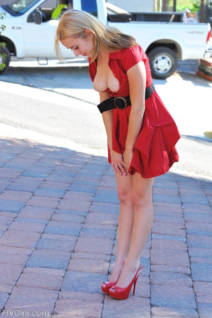 Черноволосая решила удивить всех и на фоне зеленых деревьев, песка и голубого неба, барышня вышла в красном платье и позирует. Очень красивое лицо, серьезный возбуждающий взгляд и чуть крупноватые бедра и талия - все это супер! Она танцует на песочке, потягиваясь кверху.
