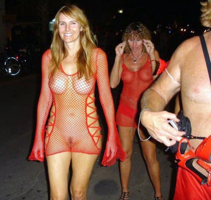 Жизнерадостная бабёнка в очень откровенном просвечивающимся платье отправится шокировать людей. У нее аккуратные сиси, а соски готовы пробить тонкую материю, трусиков на ней нет, это хорошо, можно рассмотреть приятную пилотку на чисто побритую.