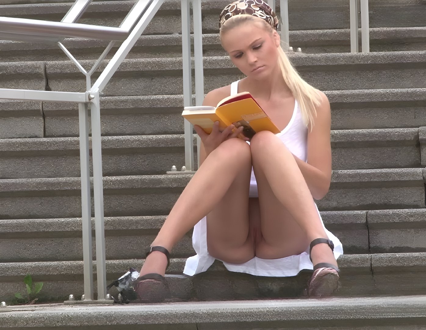 Такой публичный апскирт, какой показывае6т скрипачка многим придет по вкусу – красивый наряд и виднеющиеся беленькие трусики. Другие девки не столь привлекательные, как на первом кадре, но и они не отстают с демонстрацией своего добра.