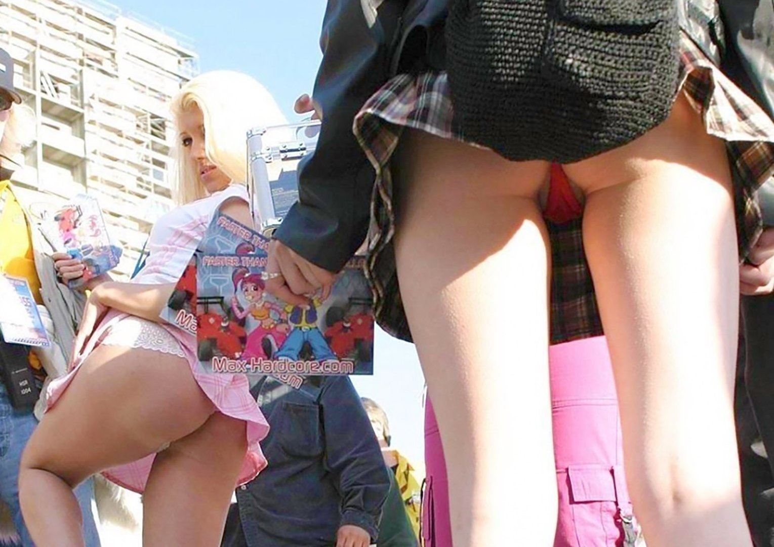 Можно с уверенностью говорить о том, что, если любой мужчина получит такую возможность заглянуть под женскую юбочку, то молниеносно воспользуется представившемся ему шансом. Именно этим предлагаем заняться и мы, так как перед нами находятся горячие фотографии, на которых запечатлён сексуальны апскирт с полуобнажёнными куколками. Полюбоваться на раздетые ягодицы в тоненьких стрингах весьма приятно, ну, а ещё лучше, если на бабе нет трусиков, и хорошо видна её голая пилотка.