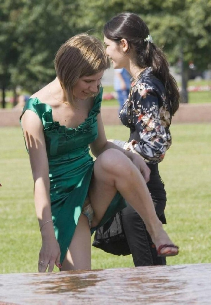 Надо же быть такими похотливыми особами, чтобы позволить себе не только выйти в народ в таких коротких нарядах, но и ещё устроить эротические засветы. Неосторожные голые девицы позволили запечатлеть себя на таких пикантных фото, о которых, возможно даже не догадываются. Но зато все зрители могут с удвоолсьвтием теперь восхищаться ими, наблюдая за тем, какие клёвые обнажённые прелести у них. Хотелось бы, правда, больше раздетых зон, но этим можно довольствоваться от души.
