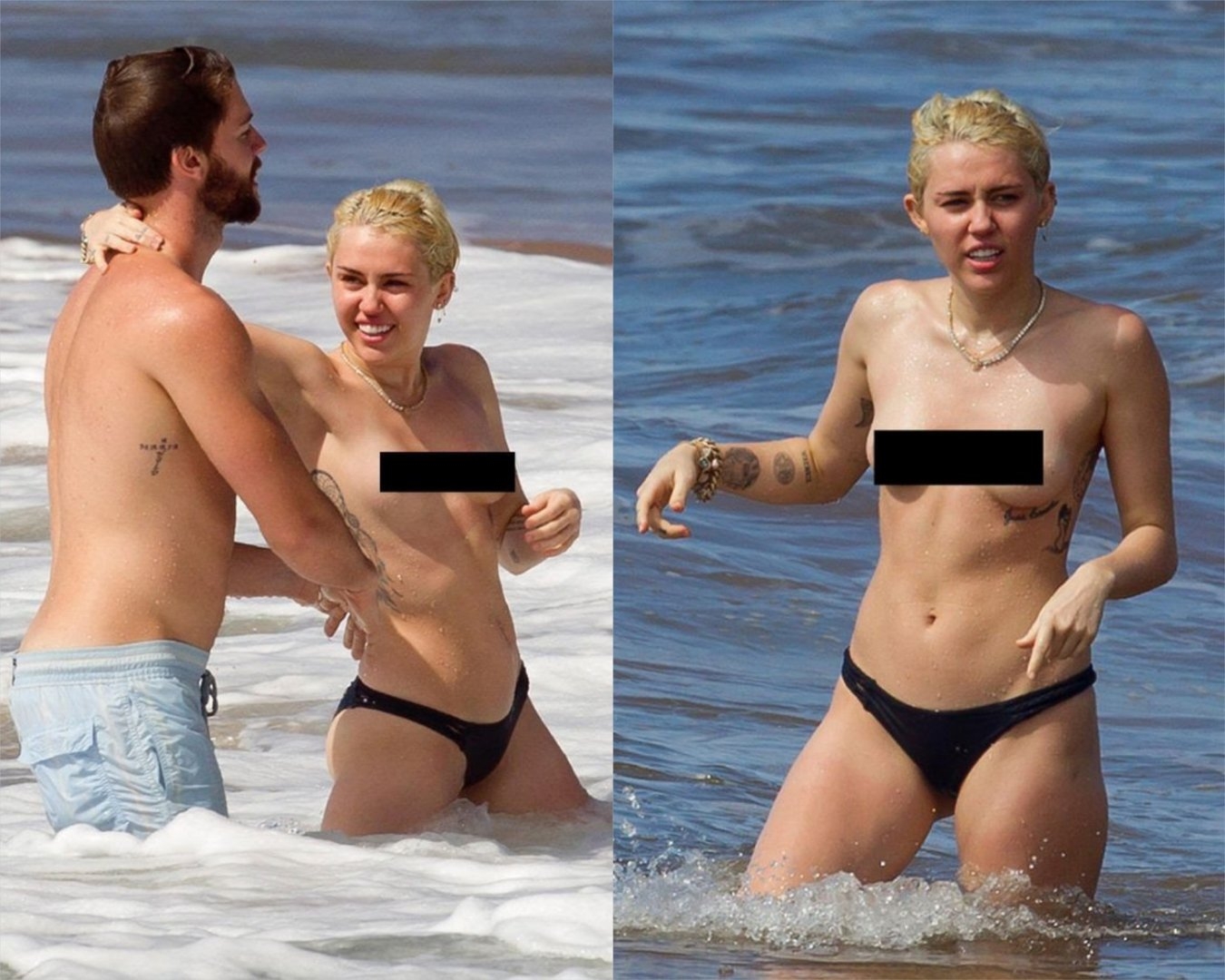 Каждый человек хочет отдохнуть, а знаменитости так тем более. Певица Майли Сайрус в отпуске с радостью купается в океане и всячески наслаждается появившейся возможности от всех проблем уйти. Хорошо видна фигура Miley Cyrus и ее сиськи в купальнике.
