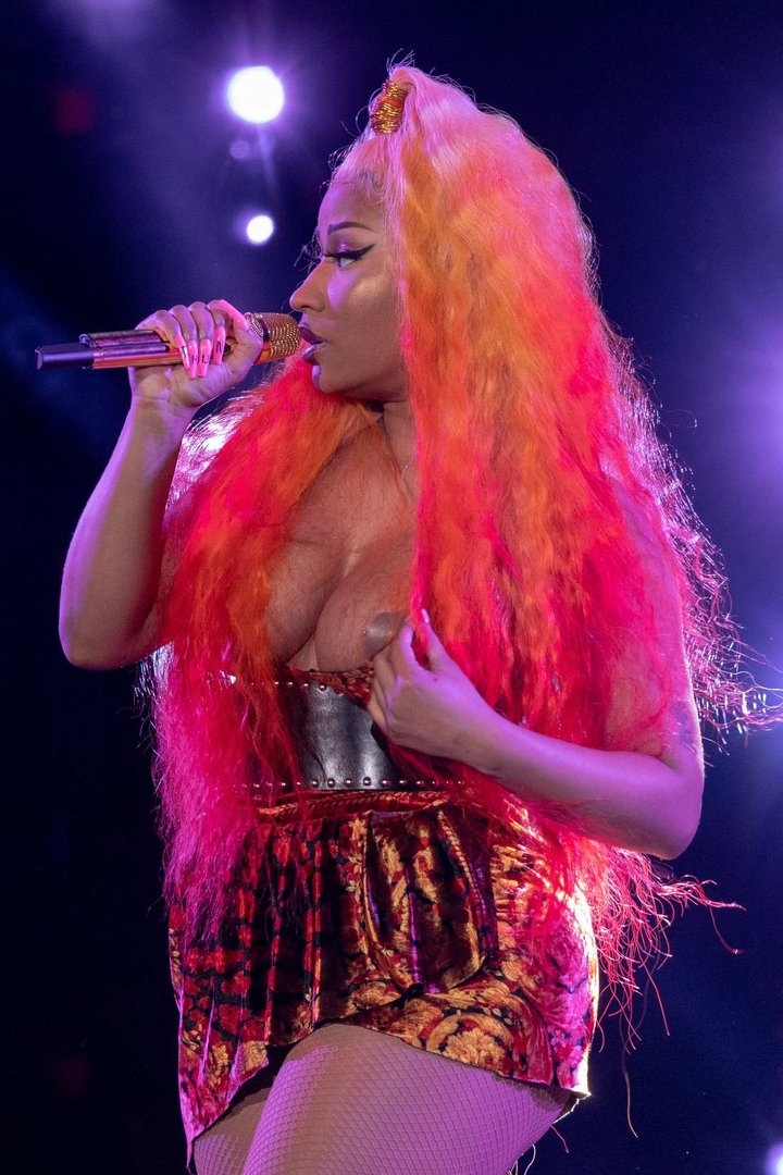 На фото рэп певице Minaj Nicki 31 год, а выглядит она на много старше. Там где Ники на сцене с обнаженной грудью я бы дал ей далеко за сороковник. Если не такой наряд, то Минаж вполне сексуально и нормально выглядит, а зрители без ума от ее таланта