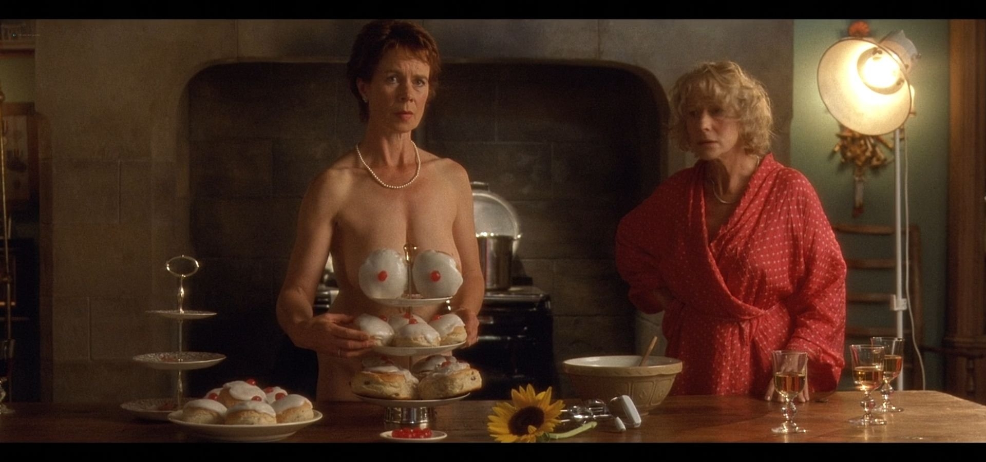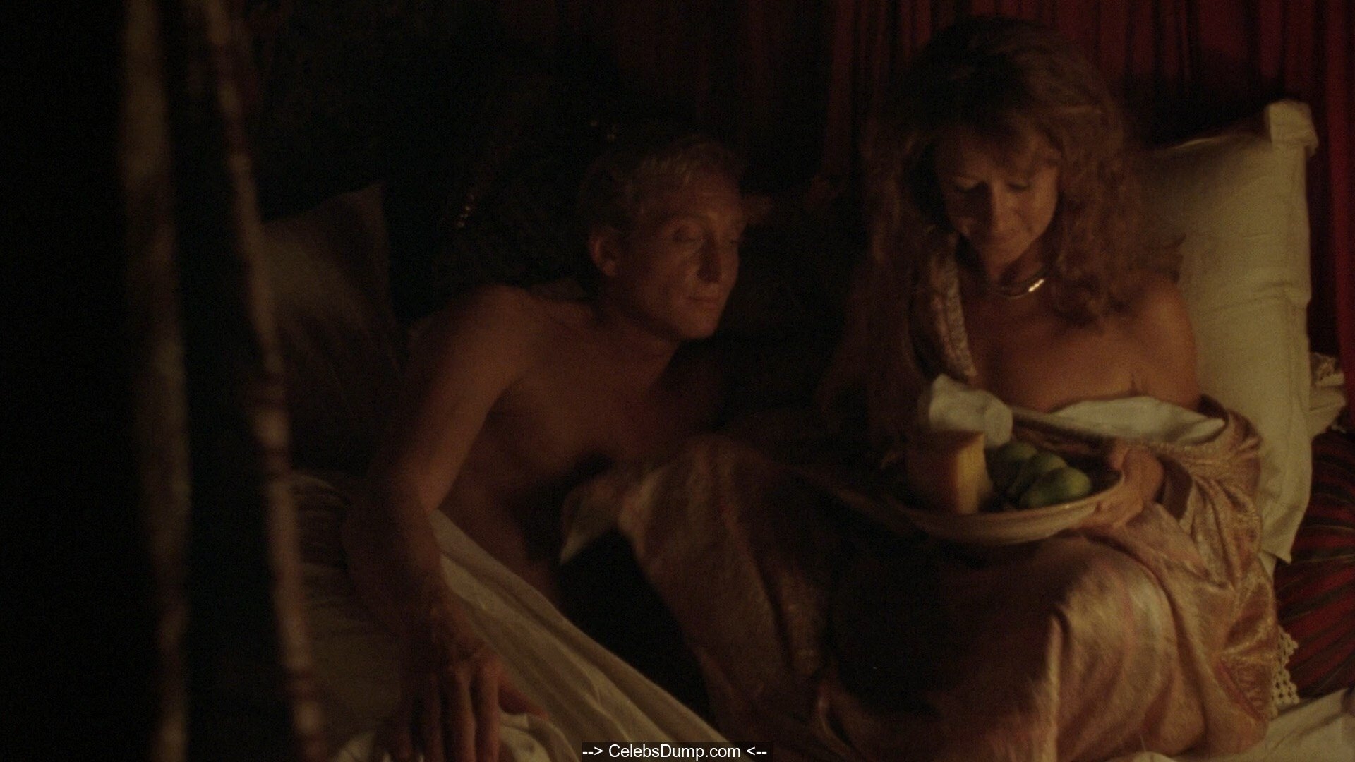 Сельские бани, большие и маленькие кровати, огромные шикарные виллы и просто какие-то притоны – это только маленький перечень амплуа, в котором снималась известная и знаменитая актриса Хелен Миррен. Заснятая в различных откровенных постельных сценах, в которых не всегда, увы, выглядит идеально, а проще сказать лишь несколько из них можно разглядеть что-то интересное. Немолодое лицо, довольно растянутая грудь смотрится не совсем привлекательно, а вот сцена возле лестницы хороша, наверно там она была моложе.