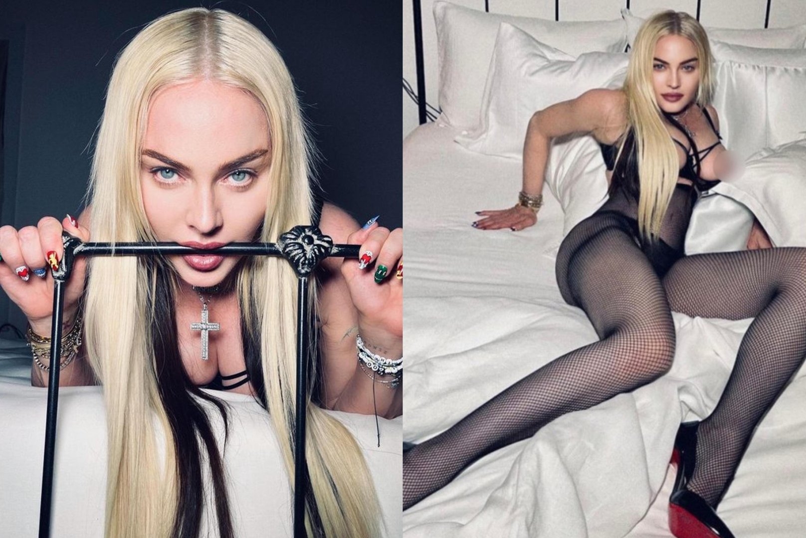 Существует совсем немного снимков на сегодняшний момент с обнаженной Мадонной, где которых она успела себя показать. Однако эти фото, которые по праву могут считаются легендарными, в виду того что певица в действительности откровенно снимается и смотрится гораздо лучше других престарелых поп-певиц. В этой подборке есть кадры из фильмов, где Madonna раздевается демонстрируя дикую страсть, покажет сиськи вполне сохранившееся. Хотя актриса из нее откровенно никакая, но посмотреть есть на что.