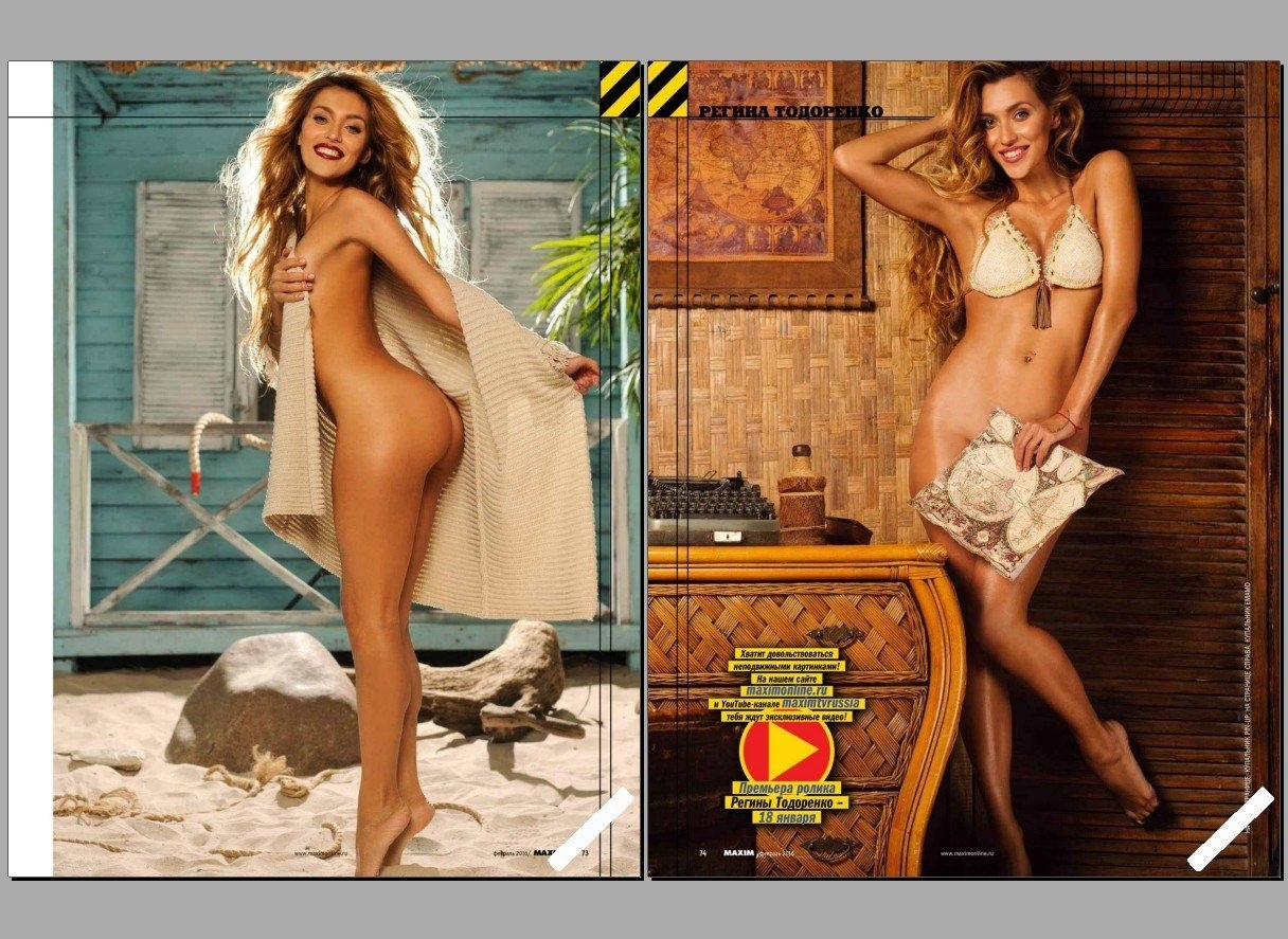 Очаровательная звезда Регина Тодоренко решила в этот раз в журнале максим восхитить публику худеньким стройным телом, от которого все знойные мачо будут в полном восторге. Голая знаменитость без трусиков прикрывает гладкую письку только подушкой, а на некоторых откровенных снимках хвастается маленькой обнаженной грудью, от которой сразу же можно сойти с ума. Завоевать богатую телеведущую из очень не просто, но только самым старательным удается достигнуть предел мечтаний.