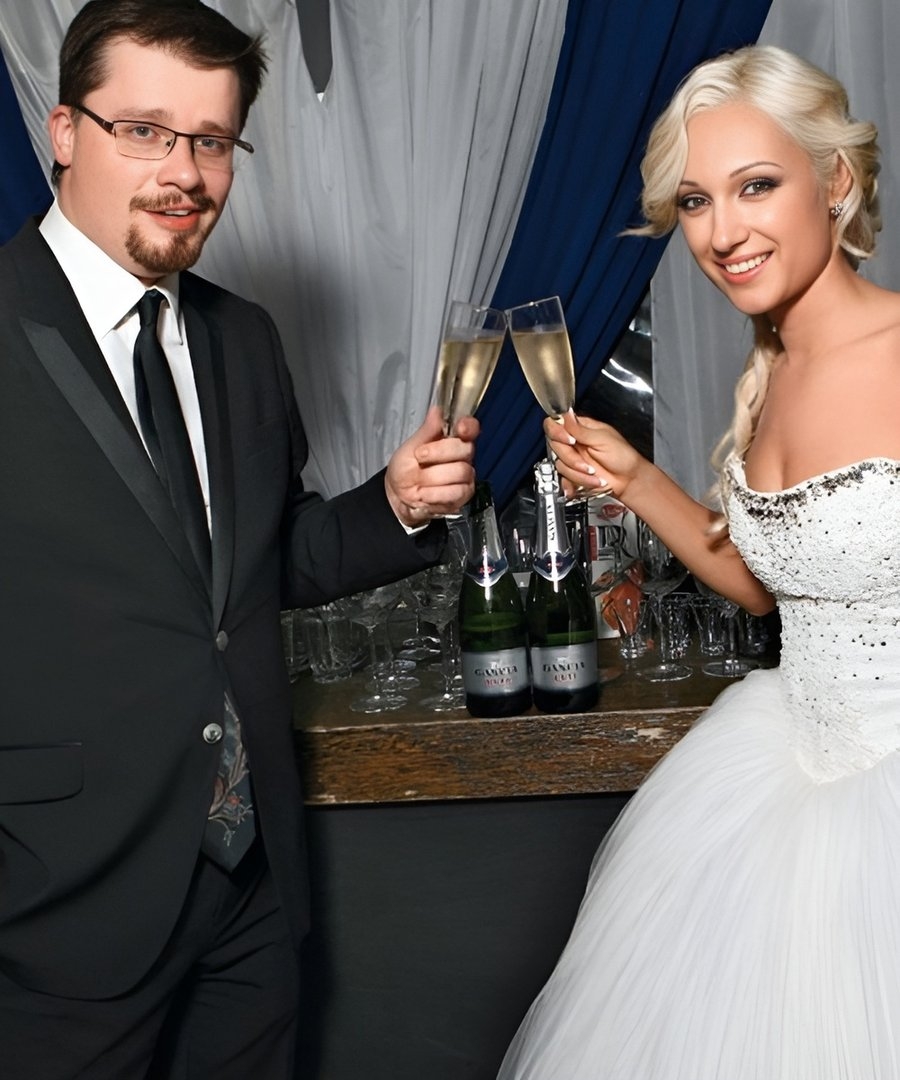 Жена известного на всю страну, где есть телевидение, а в частности, канал тнт, приколиста, комика и экс-резидента популярного проекта Comedy club непревзойденного Гарика Харламова. Юлия Лещенко и "Бульдог" узаконили свои отношения 4 сентября 2012 году, и по всей видимости очень и очень счастливы рядом друг с другом, а отметили сей праздник в Royal Bar. Безусловно красивая невеста - стройненькая блондинка, да и жених - не мало известная и популярная личность являют собой весьма колоритную семейную пару.