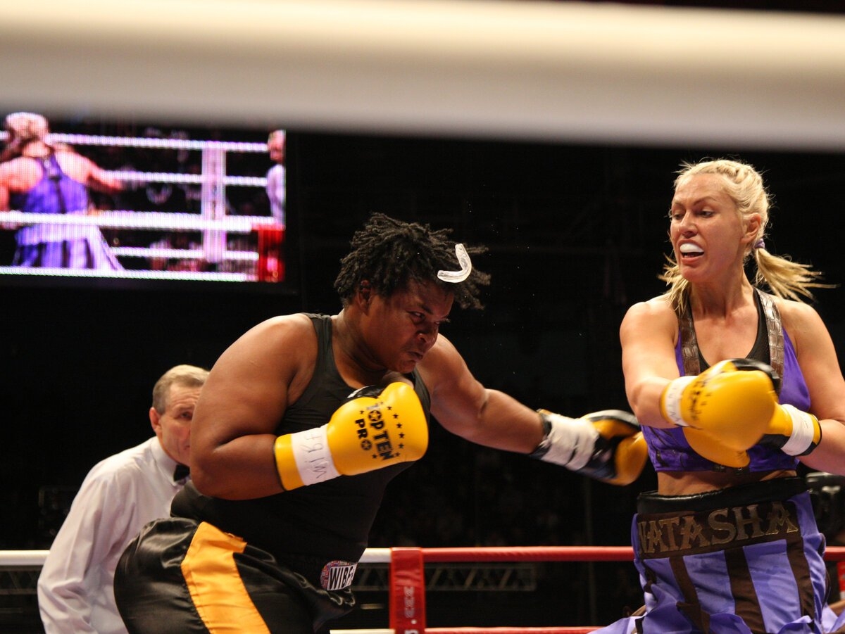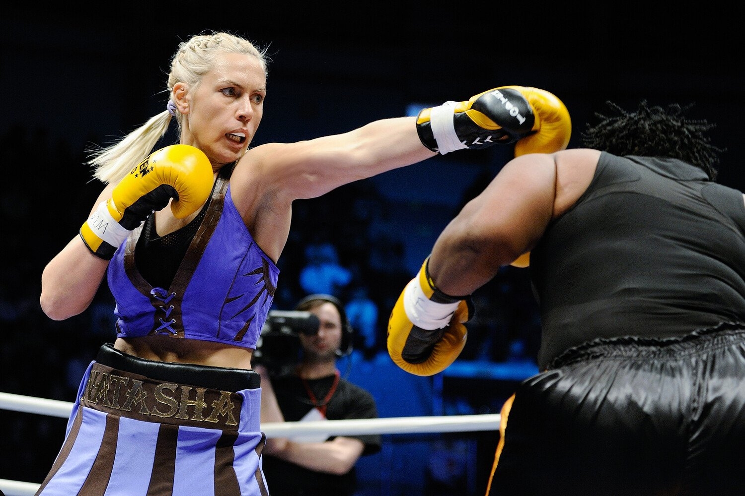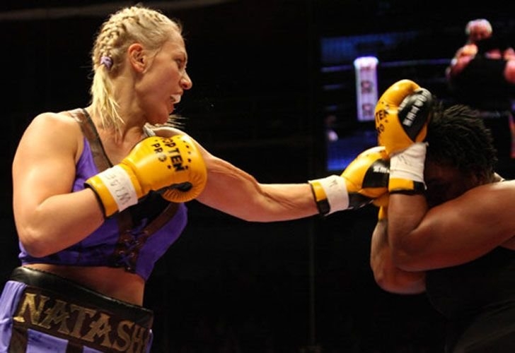 Знаменитая Россиянка Наталья Рогозина выступает на боксерском ринге в супертяжелом весе, своих соперниц она лихо нокаутирует, не оставляя ни единого шанса. У Натальи довольно не плохая фигура, симпатичные сиськи. Со своим лозунгом «я за стабильный секс с перерывами на бокс », у нее скоро не будет соперниц.