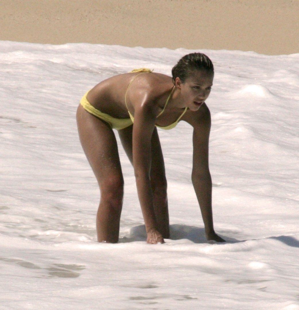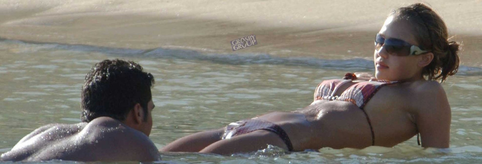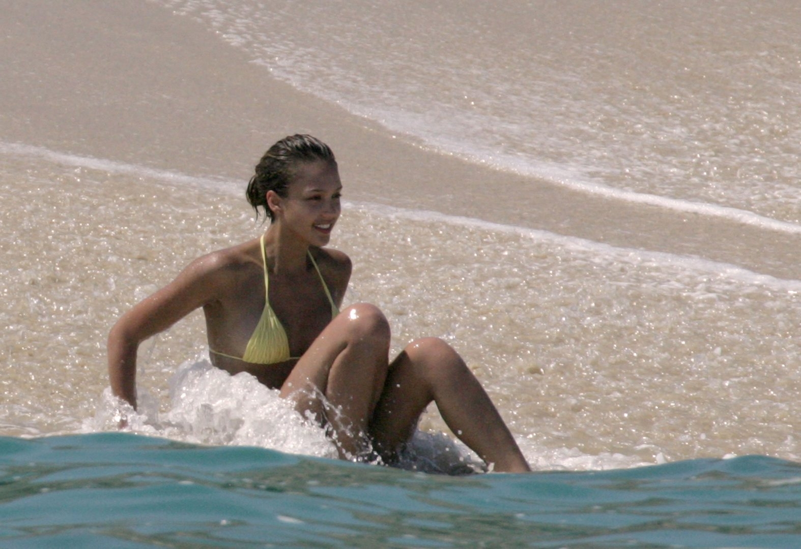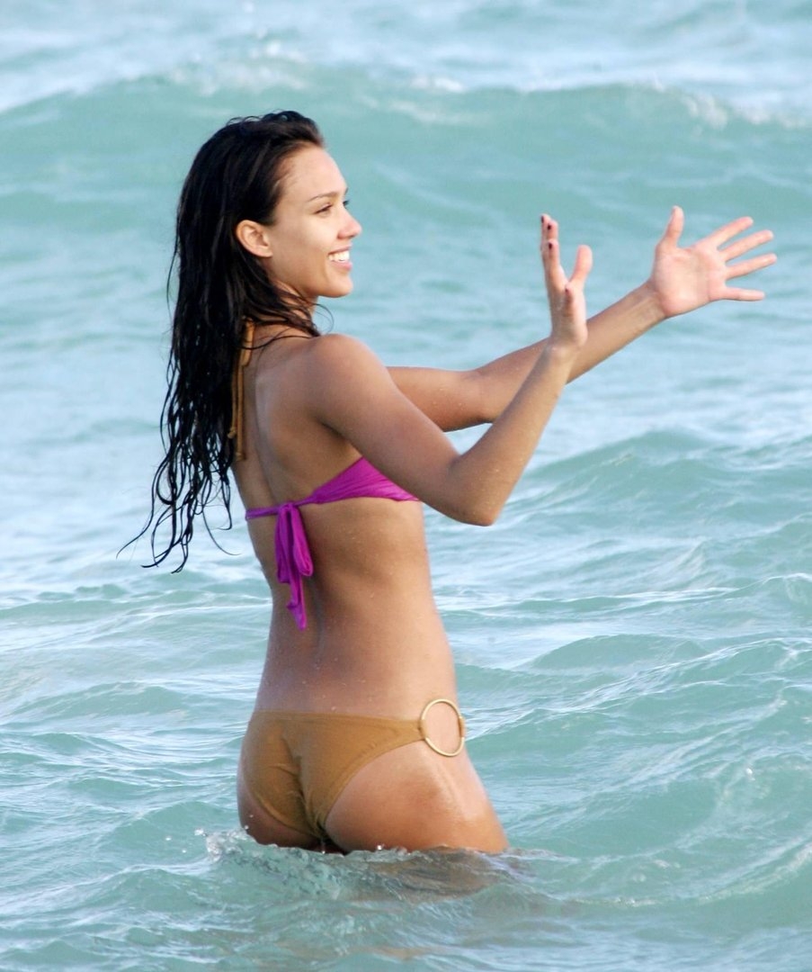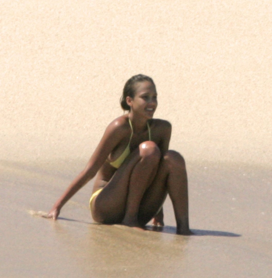 Джессики Альба голливудская актриса обожает показывать свое загорелое сексуальное тело. Эротический фотосет с Джессикой проходит на пляже, на фоне не спокойного моря. Знаменитость слегка испачкалась в песочке, но это только дополнят ей эротизма.